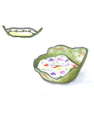 Repliée sur elle-même, comme une veste rangée dans sa propre poche, cette bouchée évoque une seconde peau protectrice, abritant de la pluie et du froid.